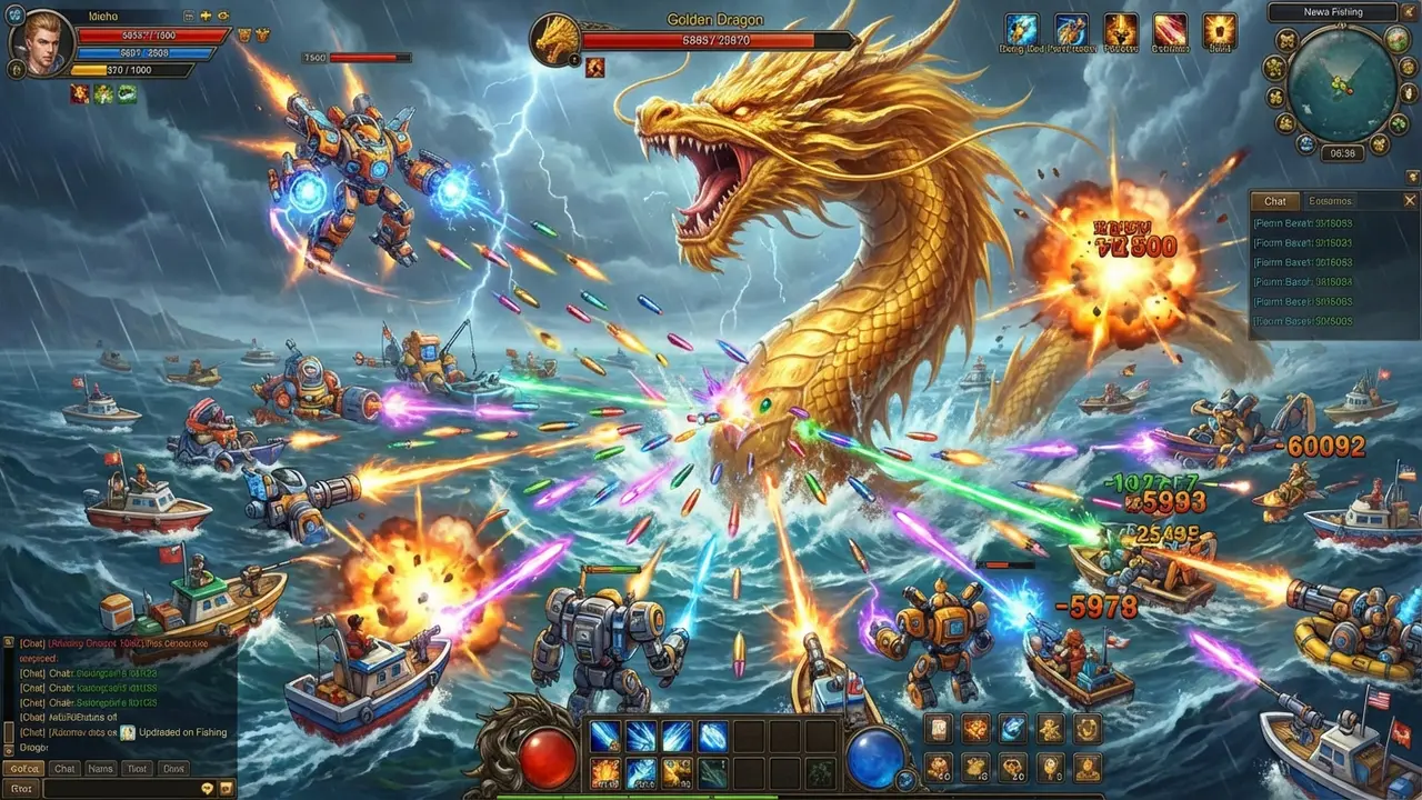 • Boss huyền thoại và sinh vật đặc biệt: Đây là linh hồn của cuộc đi săn. Các Boss như Rồng Vàng Biển Sâu, Cá Mập Cơ Khí, Nàng Tiên Cá Vàng hay Cóc Ngậm Vàng không chỉ sở hữu lượng HP khổng lồ mà còn có các kỹ năng đặc biệt (tăng tốc, tạo giáp). Hạ gục chúng mang lại hệ số nhân thưởng cực đại (x100 – x1000) và cơ hội kích hoạt Jackpot đại dương.