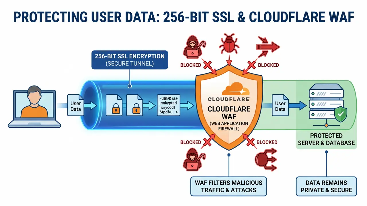 Chứng chỉ bảo mật SSL 256-bit và Cloudflare