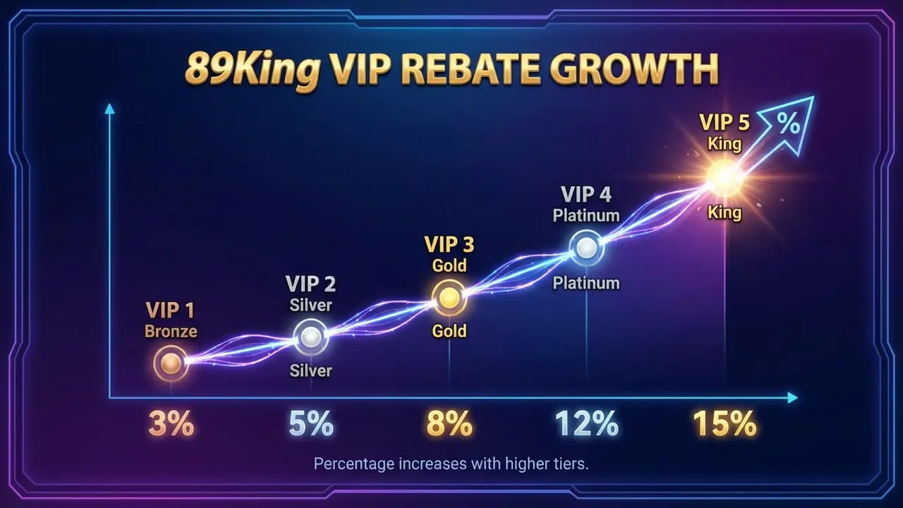 Đây là chiến thuật quan trọng nhất. Hệ thống VIP tại 89King và chính sách hoàn trả có mối liên hệ mật thiết. Cấp bậc VIP của bạn càng cao, tỷ lệ hoàn trả trên cùng một sảnh game sẽ càng lớn. Đây chính là “đòn bẩy tài chính” mạnh mẽ nhất. Thay vì chơi dàn trải ở nhiều nền tảng, việc tập trung giải trí tại 89King để tích lũy điểm và thăng hạng VIP sẽ mang lại lợi ích tài chính dài hạn. Hãy đặt mục tiêu và vạch ra lộ trình thăng hạng rõ ràng, bởi mỗi cấp bậc mới được mở khóa đồng nghĩa với việc dòng tiền thụ động của bạn đang được nhân lên.